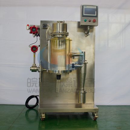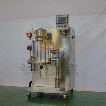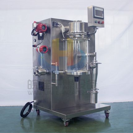 小型噴霧干燥機(jī)小型噴霧干燥機(jī)主要在科研階段對(duì)溶液或流體樣品進(jìn)行噴霧干燥成粉或微小顆粒。其原理是通過霧化器將樣品霧化成微細(xì)霧滴,進(jìn)入干燥室內(nèi)進(jìn)行熱交換,水份瞬間蒸發(fā),固體經(jīng)過旋風(fēng)分離器進(jìn)行回收,飽和氣體經(jīng)過除塵器過濾后排空,本設(shè)備可應(yīng)用于從試驗(yàn)室到一般研究室的噴霧干燥作業(yè),在食品醫(yī)藥化工行業(yè)均可良好的應(yīng)用。